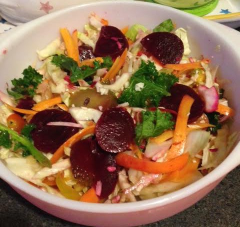 This is the first Summer salad made with ALL ingredients from the Cottage City Community Garden. Denise picked these items earlier this week.