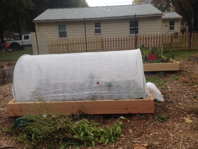 Christian from ECO City Farm taught us how to contsruct low-tunnel hoop houses to keep our garden growing through the winter. Hoop houses create a greenhouse effect and trap heat inside of the coveted area. This allows the temperature inside of the hoop to get up to 20-35% higher and protects vegetables from frost.