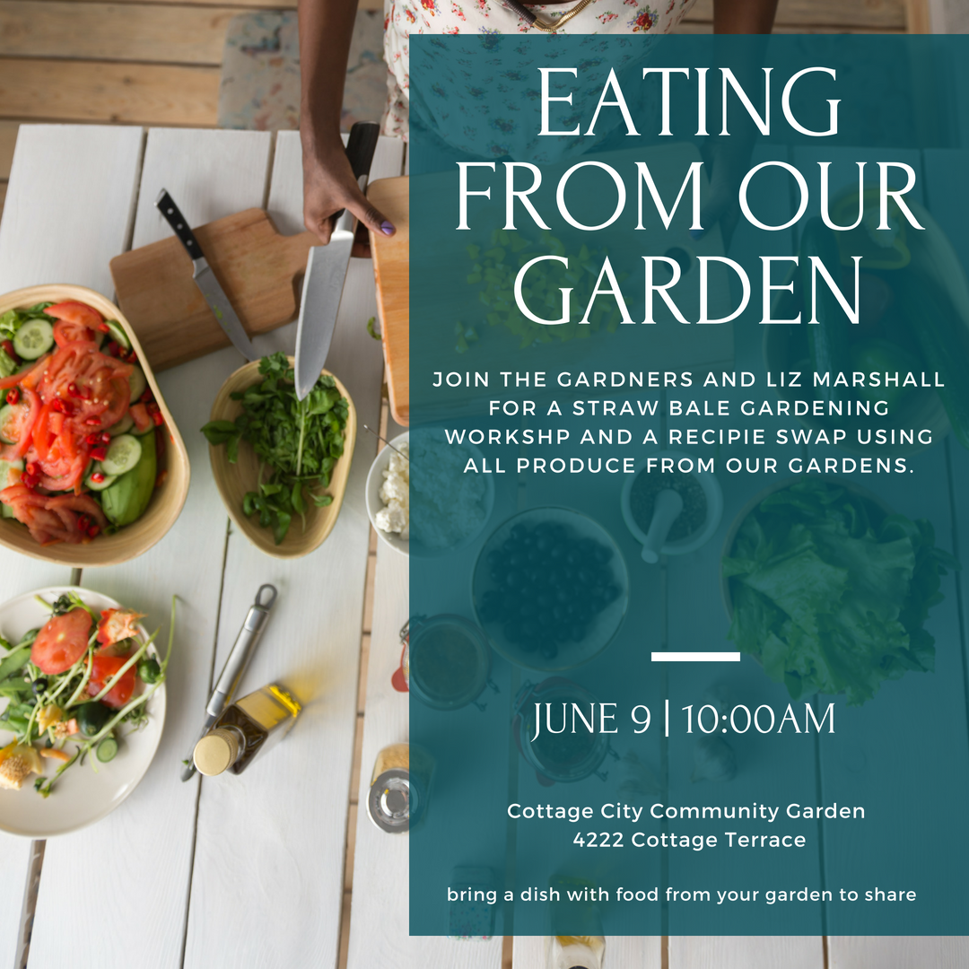 This Saturday, we’re having a workshop on Strawbale Gardening and a recipe swap on eating food from our garden. Liz Marshall, a County Master Gardener will conduct the workshop, it begins promptly at 10:00am. Please bring a dish or recipe to share as a friend.